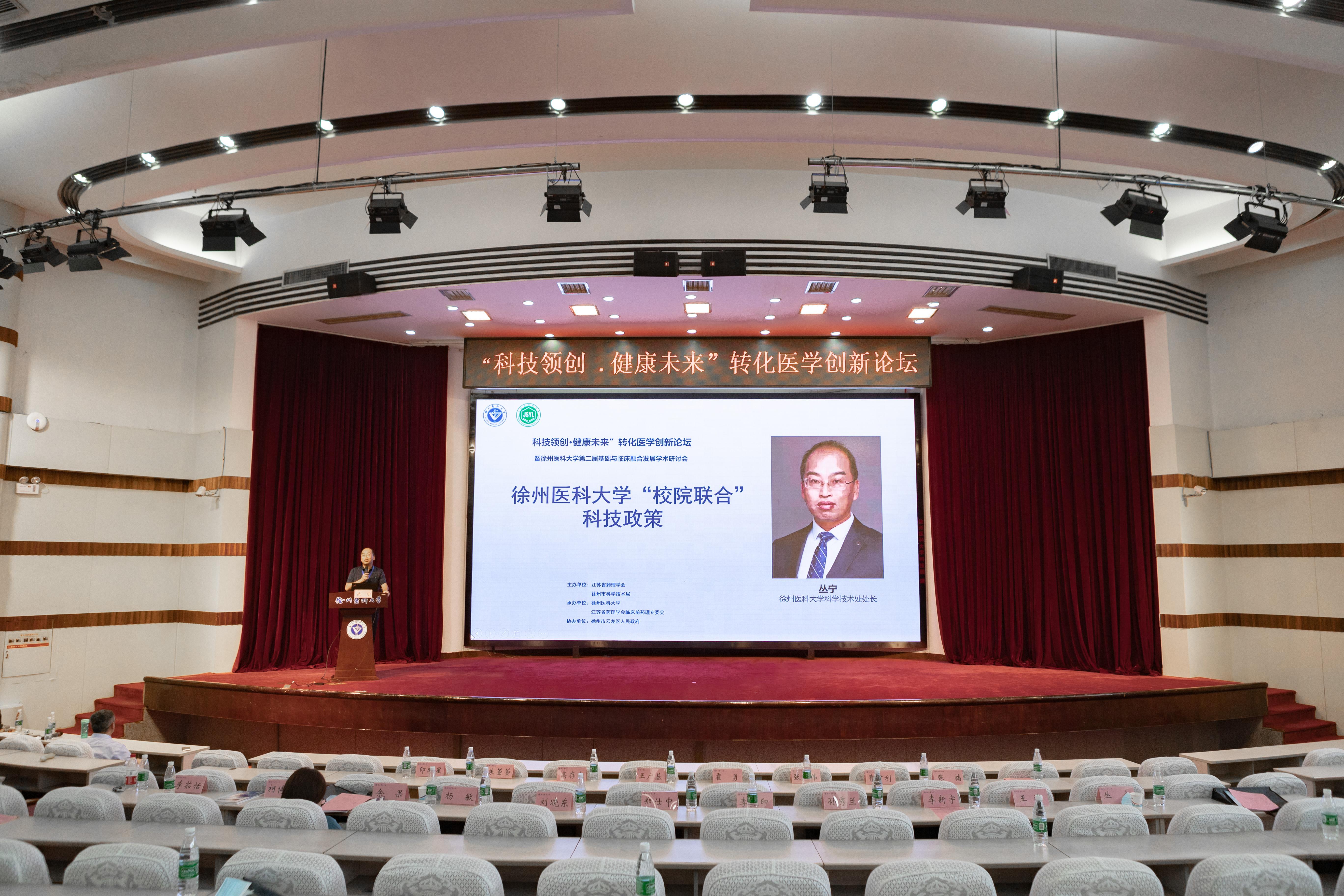 6月25日,“科技创新 健康未来”转化医学创新论坛暨第徐州医科大学第二届基础与临床融合发展学术研讨会在我校举办。本次研讨会由江苏省药理学会、徐州市科学技术局联合主办,徐州医科大学、江苏省药理学会临床前药理专委会承办,徐州市云龙区人民政府协办。本次研讨会主题“聚焦基础与临床实践转化、促进原始创新与医药产业的有机融合”。中国工程院院士、江苏省药理学会理事长王广基、北京大学第一医院霍勇、徐州市科技局调研员高存宝、我校副校长曹君利、江苏省药理学会副理事长、秘书长朱萱萱、江苏省药理学会副理事长张伟、徐州市云龙区政府副区长张楠出席会议,大会由江苏省药理学会副理事长、我校江苏省新药研究与临床药学重点实验室主任印晓星主持。来自江苏省药理学会、医药企业科研骨干、我校各附属医院、临床学院、校内师生约150人参会。论坛得到健康元药业集团股份有限公司、江苏康缘药业股份有限公司、SCIEX中国的大力支持。