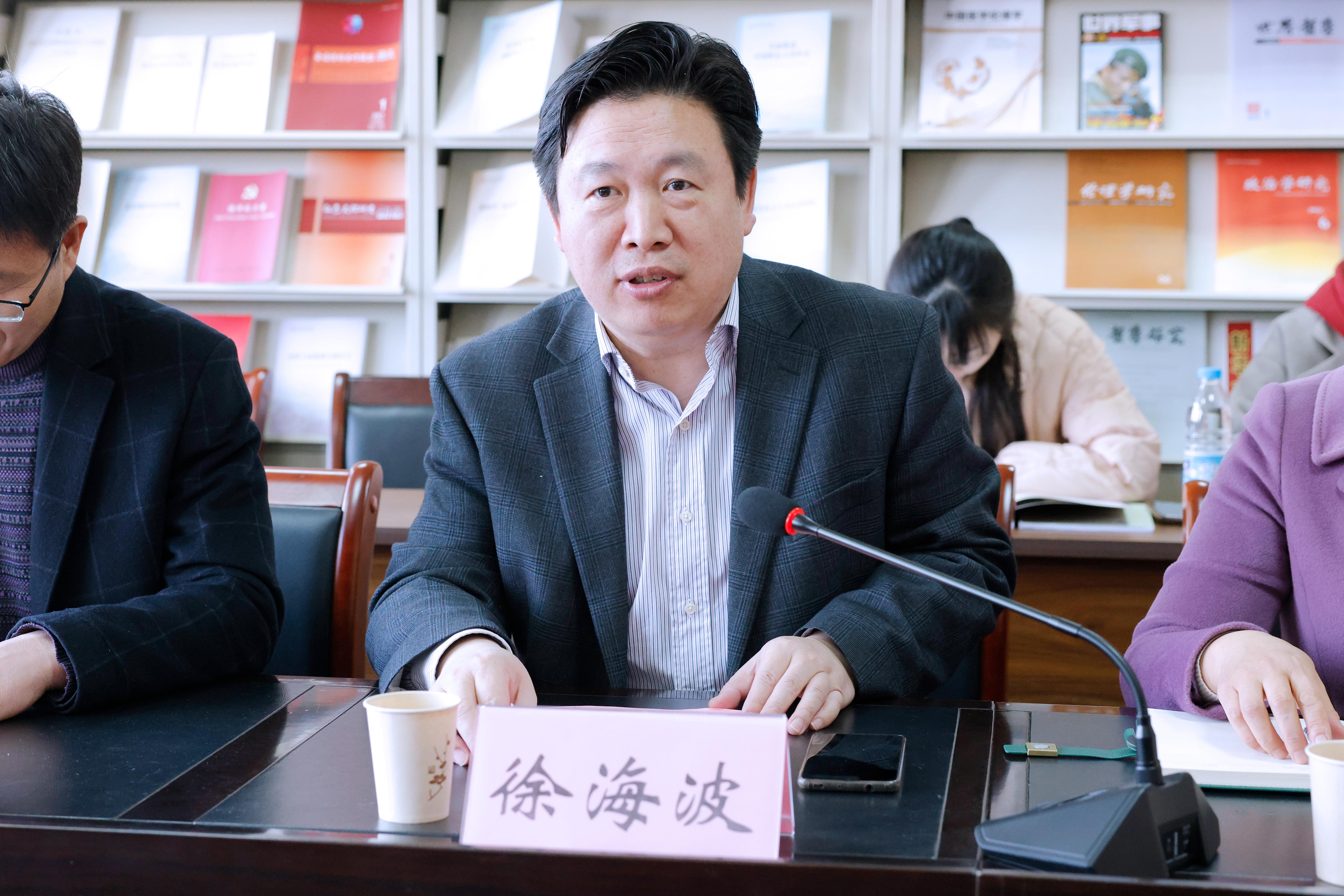 徐海波在总结讲话中对工作室提出三点希望:一是在习近平新时代中国特色社会主义思想的引领下,牢记为党育人、为国育才的光荣使命,切实提高思政课质量和育人成效,做好学生的思想引路人。二是练好内功夯实基础,为推动学校思想政治建设内涵式、高质量发展作出新的更大的贡献。三是充分发挥工作室的引领、激励、凝聚和辐射作用,为学校的育人工作做出好的示范。