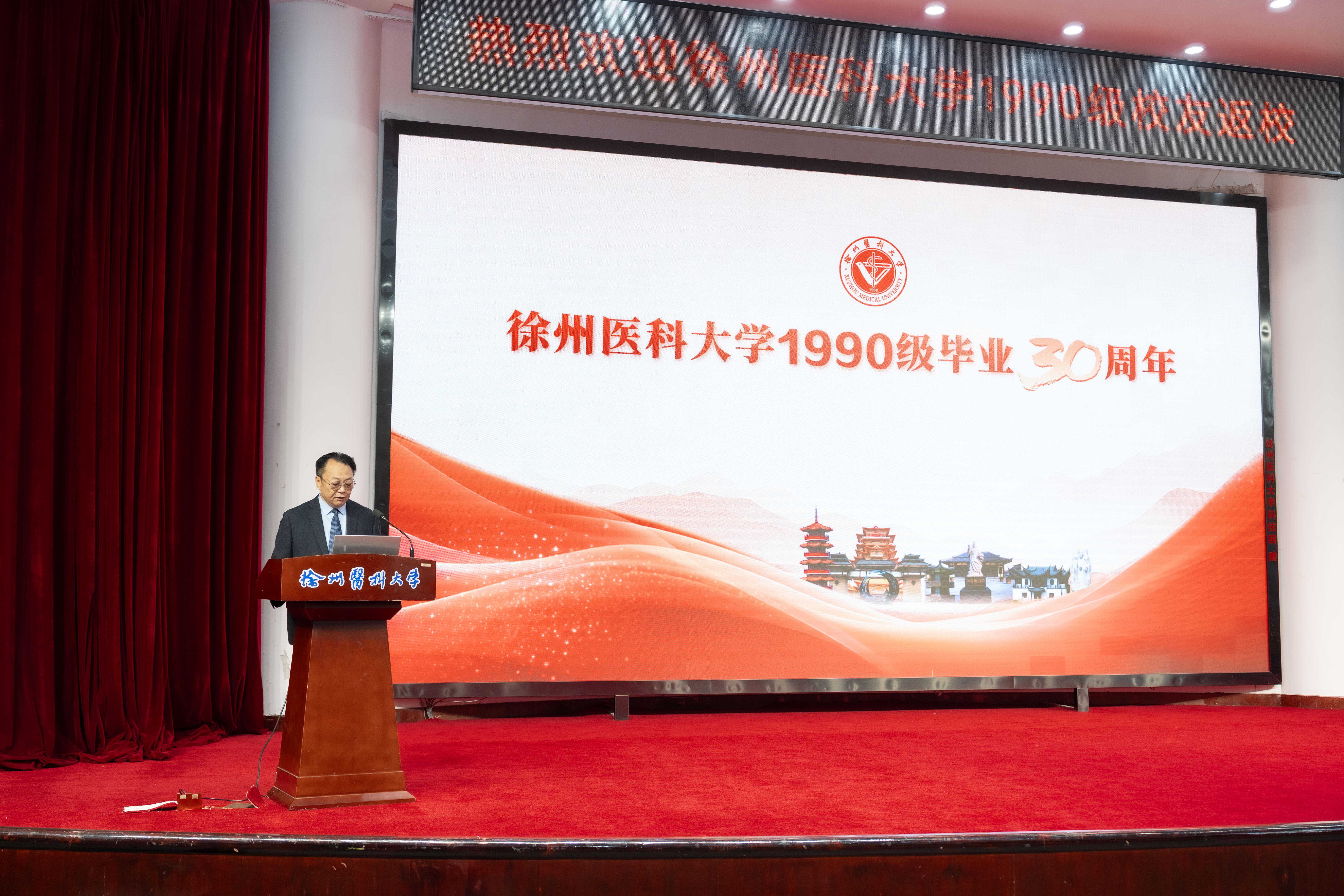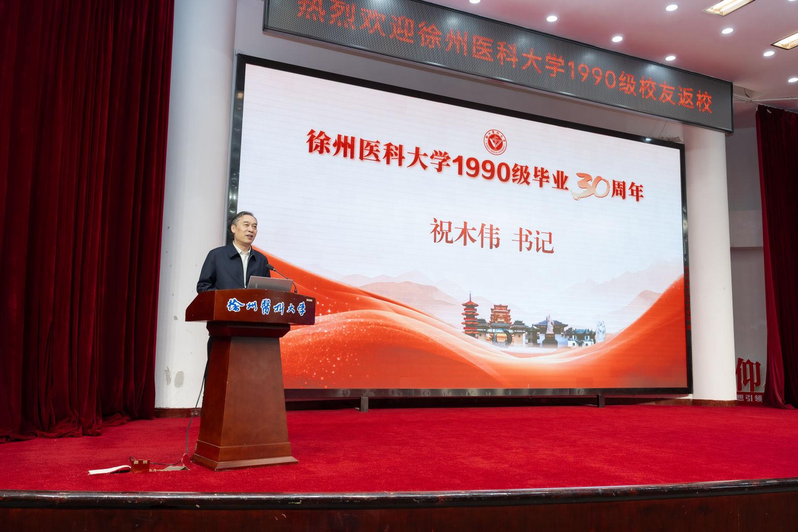 祝木伟代表学校向各位校友的到来表示热烈的欢迎,对大家在各个岗位上取得的优异成绩表示祝贺。他向大家介绍了近年来学校在人才培养、师资队伍建设、科研创新等方面取得的成绩。他强调,校友是母校最宝贵的资源和财富,学校高质量发展离不开各位校友的大力支持。他指出,今年是学校“十四五”规划收官之年,也是“十五五”规划谋篇布局之年,希望大家积极建言献策,共谋学校发展。也希望大家能常回徐医大看看,继续关心和支持母校的发展。