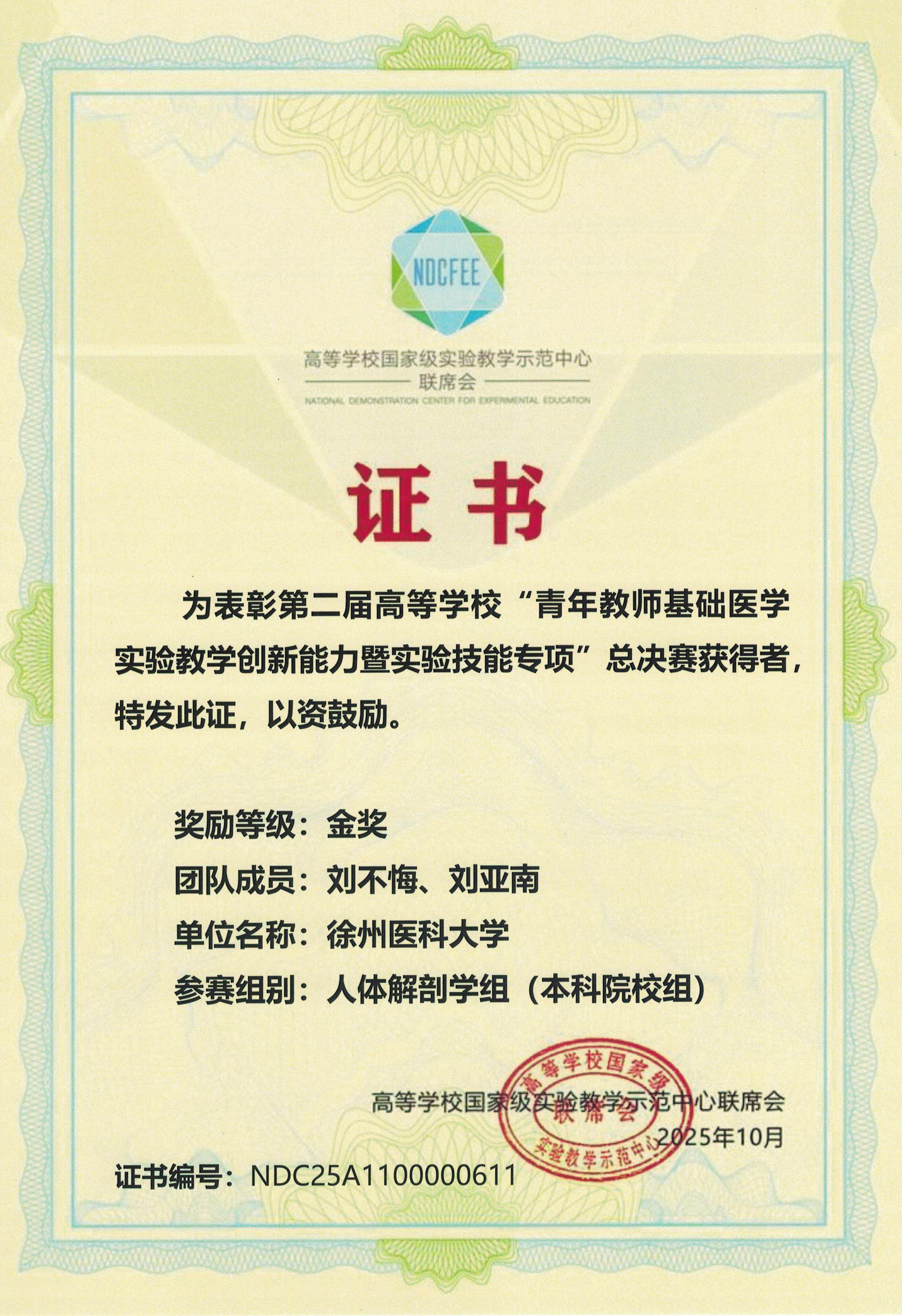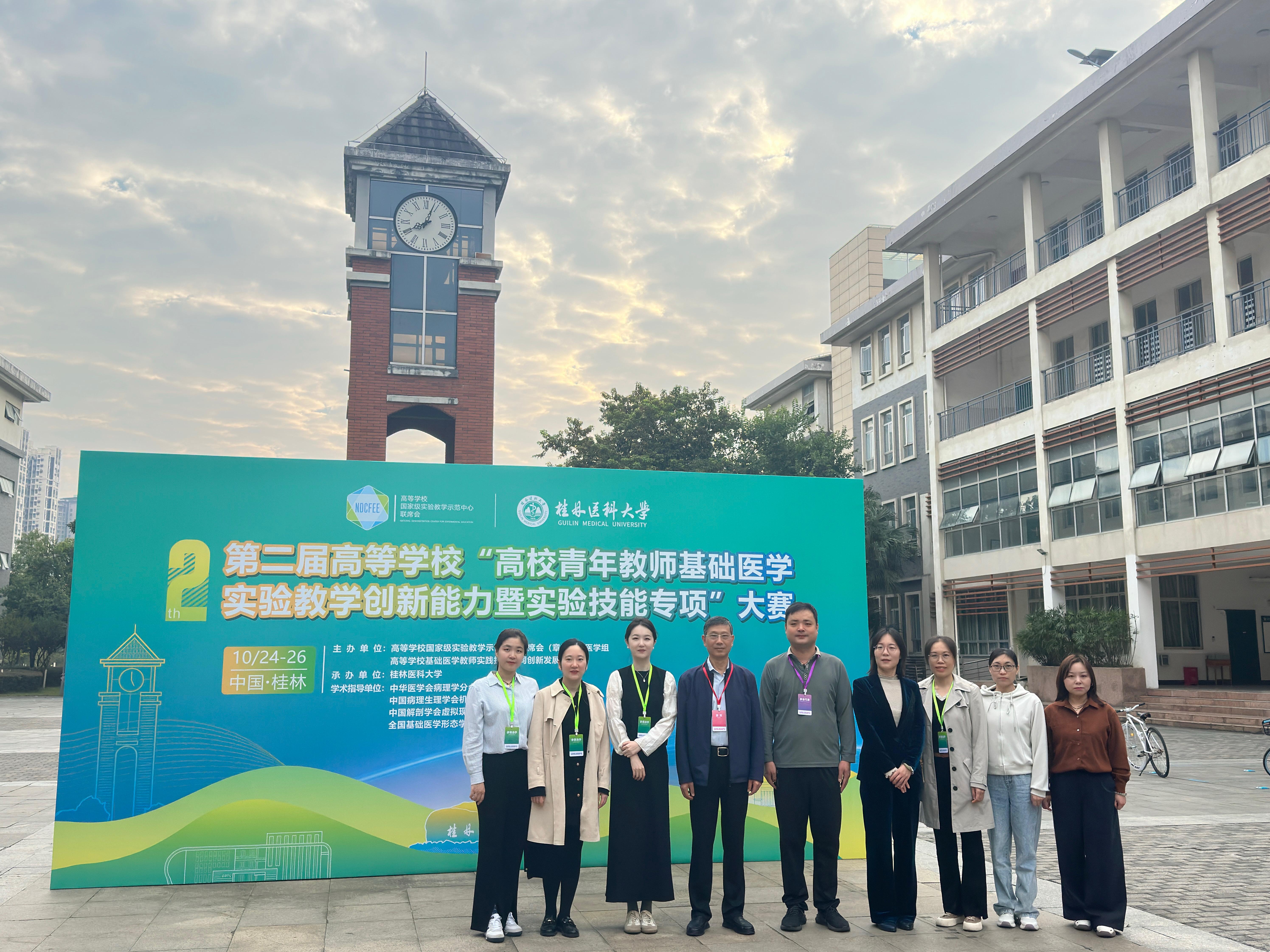 本次大赛以“提升实验技能,创新医学教育”为主题,由高等学校国家级实验教学示范中心联席会基础医学组、高等学校基础医学教师实践技能协同创新发展联盟联合主办,桂林医科大学承办。赛事吸引全国 79所高校的 143 支参赛队伍同台竞技,设人体解剖学组、人体病理学组、人体组织学组、机能学组4个赛道。我校4支参赛队伍凭借扎实的理论功底、精湛的实验技能和出色的现场表现,最终脱颖而出、斩获佳绩。这既是我校长期以来高度重视基础医学实验教学、持续深化推进教学改革的重要成果,也是学校加强青年教师培养、打造高素质师资队伍的实践体现。