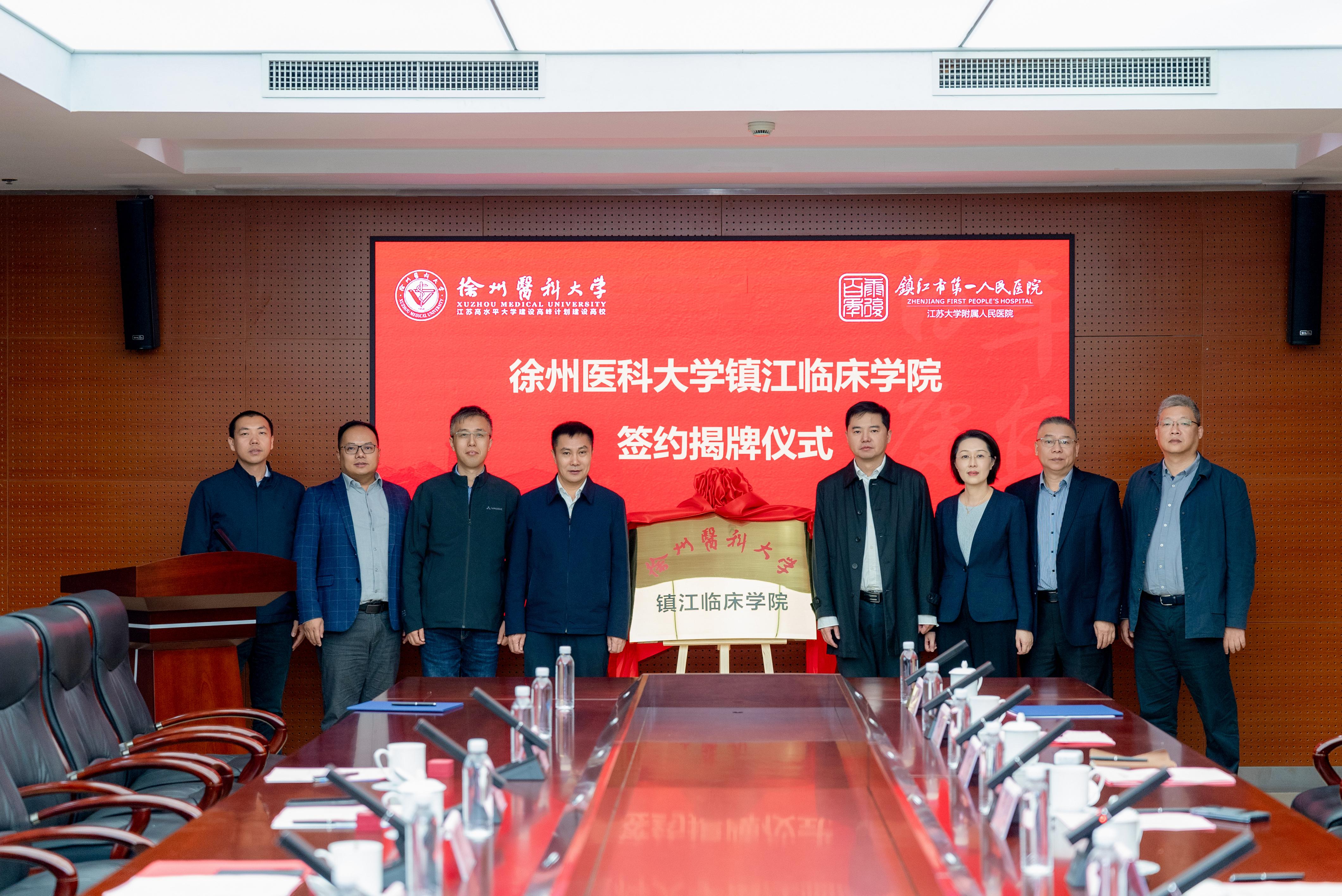 最后,刘慎军和杨毅共同为徐州医科大学镇江临床学院揭牌。