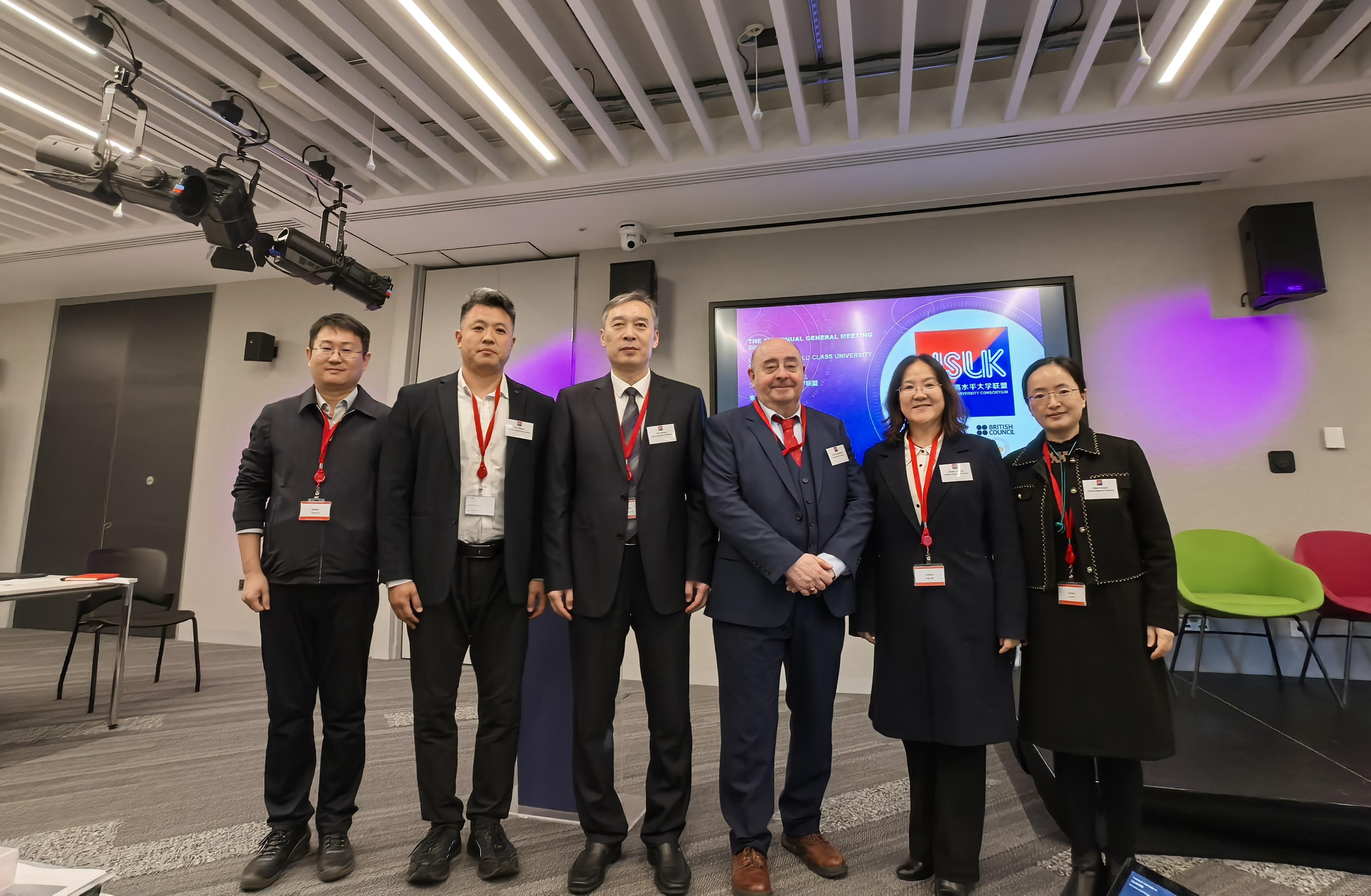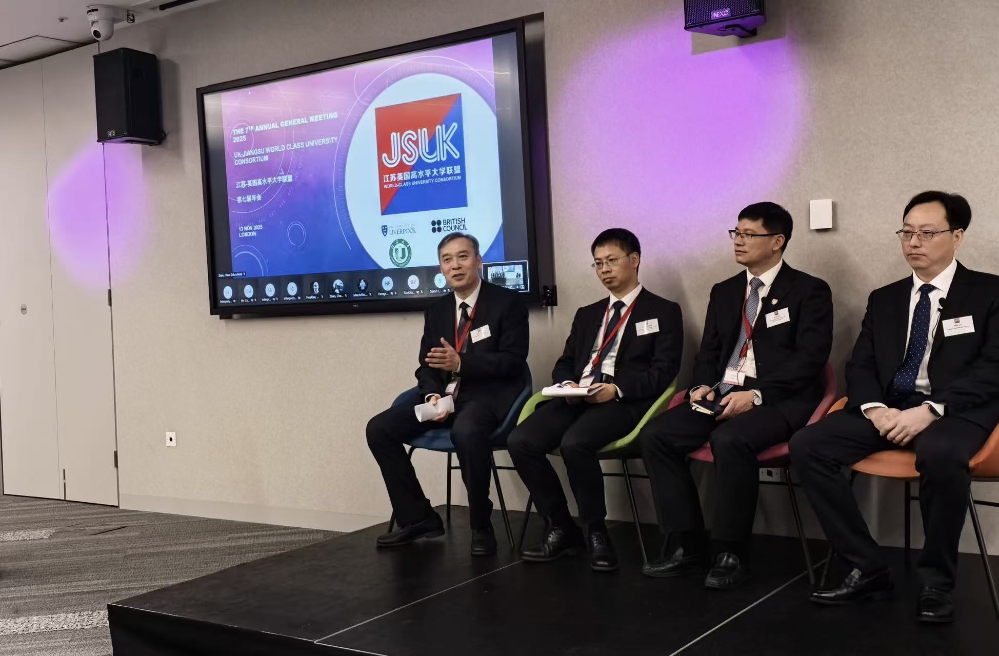 11月13日,2025年江苏-英国高水平大学联盟年会在英国伦敦举行。本次年会由英国文化教育协会与江苏省教育厅联合主办。英国文化教育协会华东地区主任Catherine Sinclair-Jones、英国利物浦大学副校长兼江苏-英国高水平大学联盟英方主席Alan Marshall、江苏省教育厅对外合作与交流处处长施蕴玉在开幕式上致辞,40多所成员高校的校领导、代表及专家学者通过线上线下方式参会。我校党委书记祝木伟率相关职能部门、二级学院负责人及联盟定制访学项目青年学者参加年会活动。