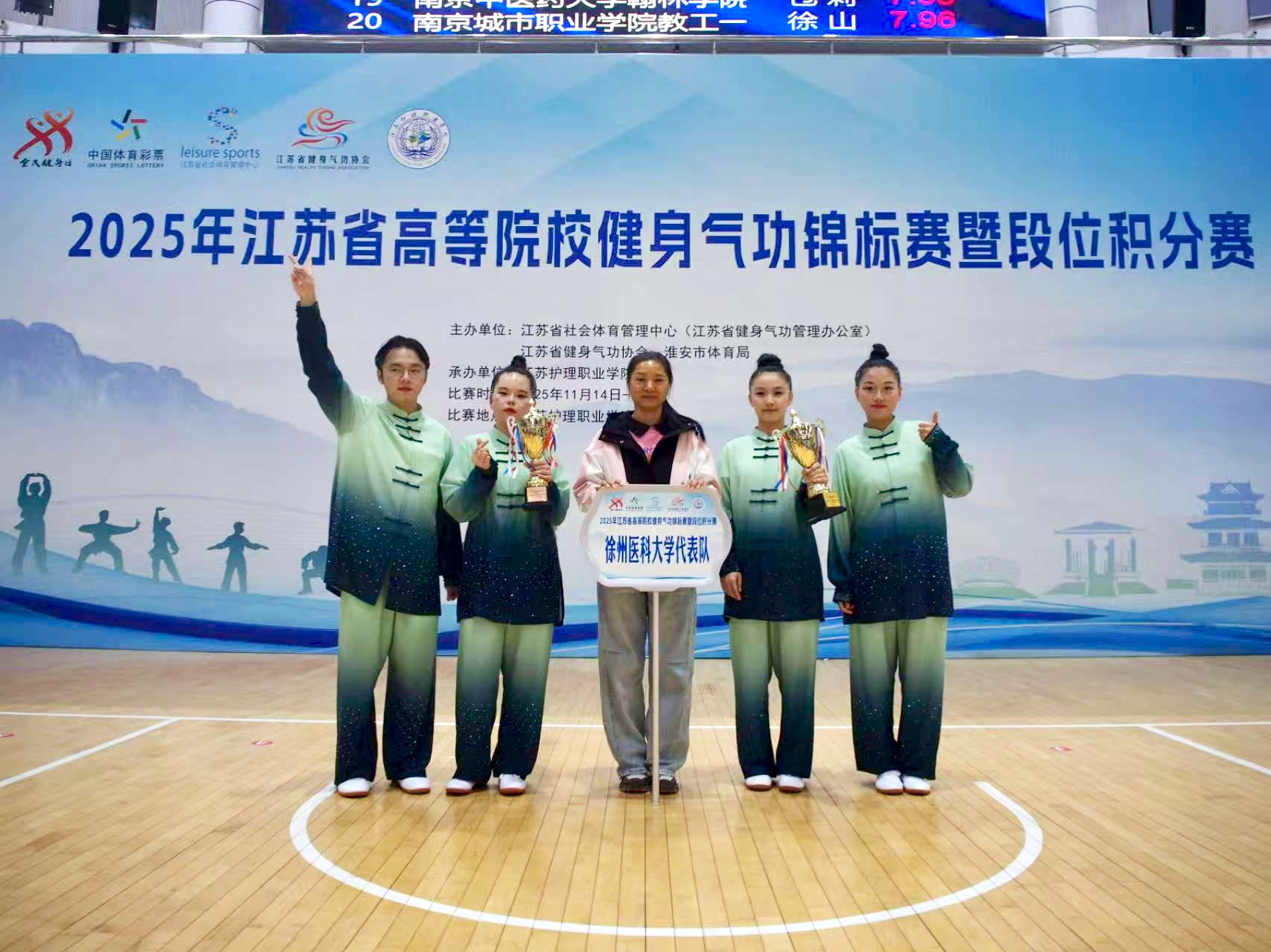 11月14日至17日,江苏省高等院校健身气功锦标赛在江苏护理职业学院举行。本次赛事由江苏省社会体育管理中心、江苏省健身气功协会、淮安市体育局共同主办,江苏护理职业学院承办。本次比赛共有57支代表队260名运动员参加。