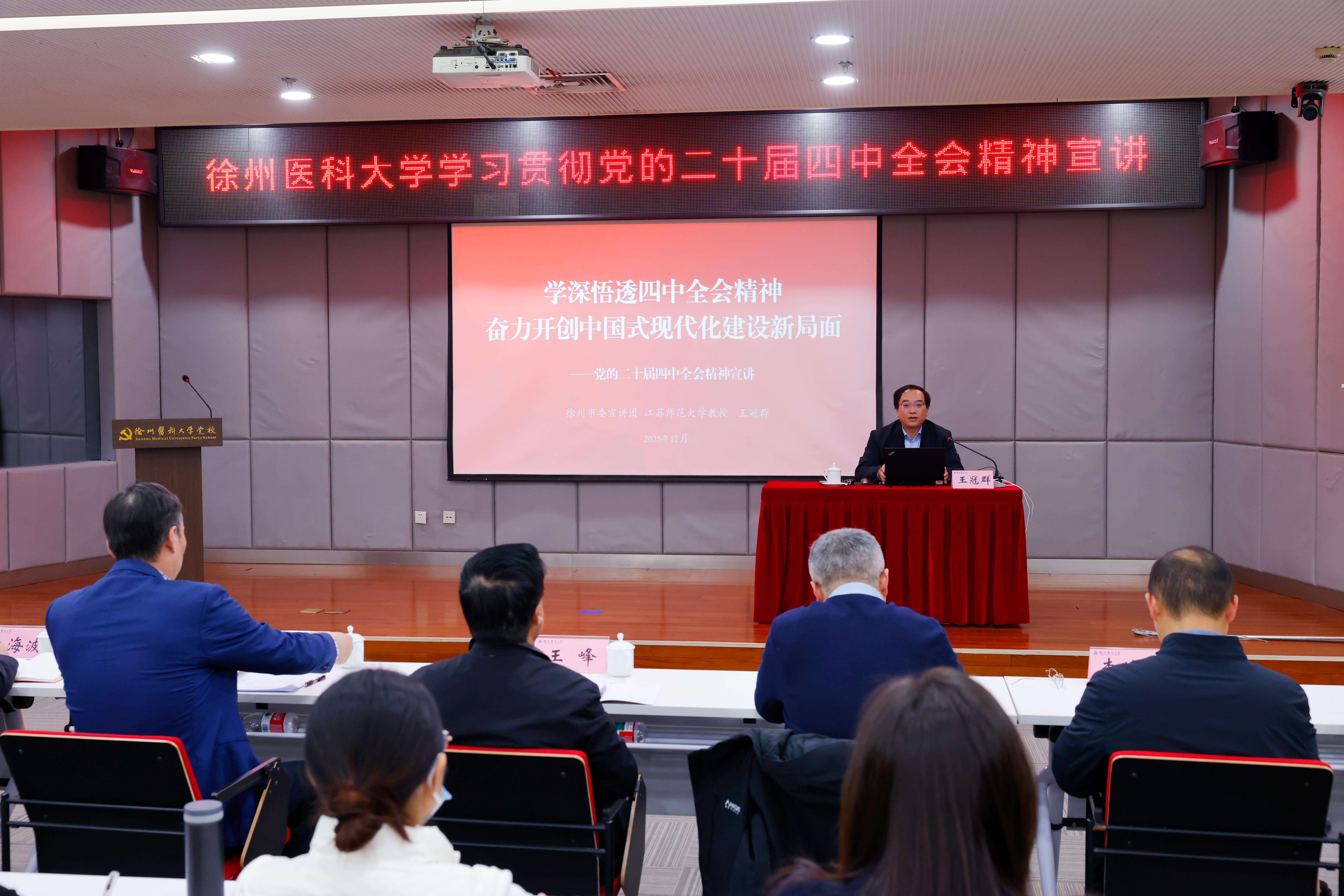 为深入贯彻落实党的二十届四中全会精神,引导全校师生党员把思想和行动统一到党中央决策部署上来,12月10日下午,市委宣讲团专家、江苏师范大学马克思主义学院院长王冠群教授来我校开展党的二十届四中全会精神宣讲。校领导班子成员和全校师生党员5000余人在党校教室及108个分会场以线上线下相结合的形式聆听报告。校党委书记祝木伟主持会议并讲话。