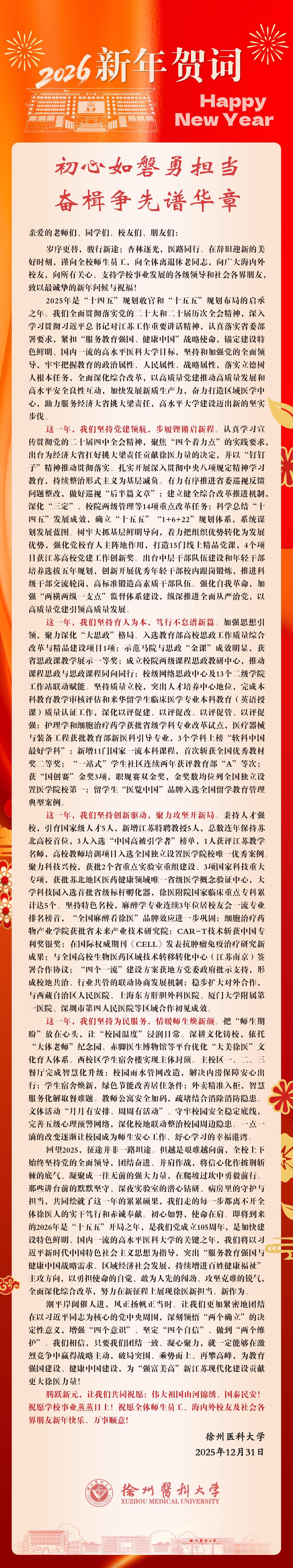徐州医科大学2026年新年贺词