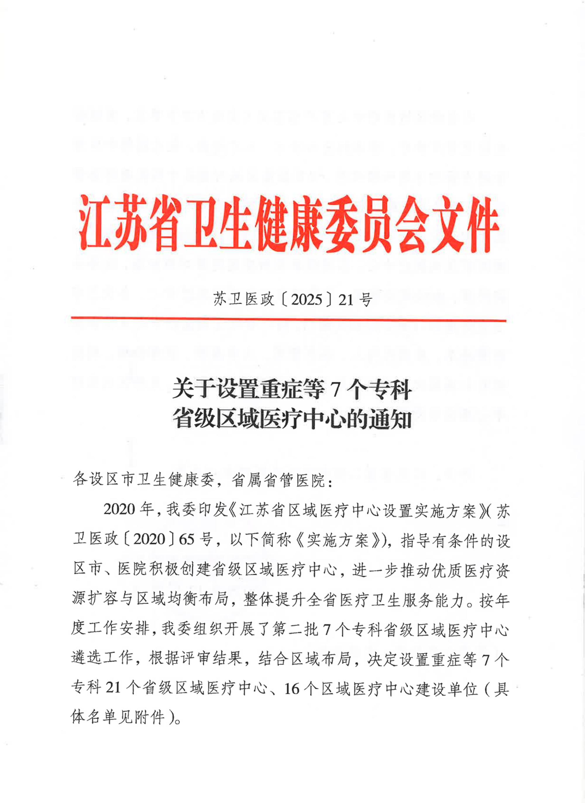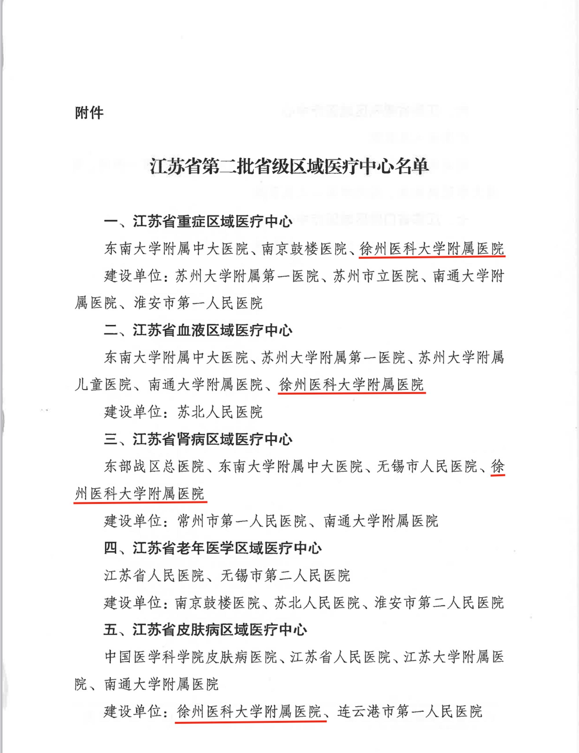 近日,江苏省卫生健康委员会发布《关于设置重症等7个专科省级区域医疗中心的通知》,公布江苏省第二批省级区域医疗中心名单,徐州医科大学附属医院新增4个,分别是:江苏省重症区域医疗中心、江苏省血液区域医疗中心、江苏省肾病区域医疗中心、江苏省皮肤病区域医疗中心建设单位。
