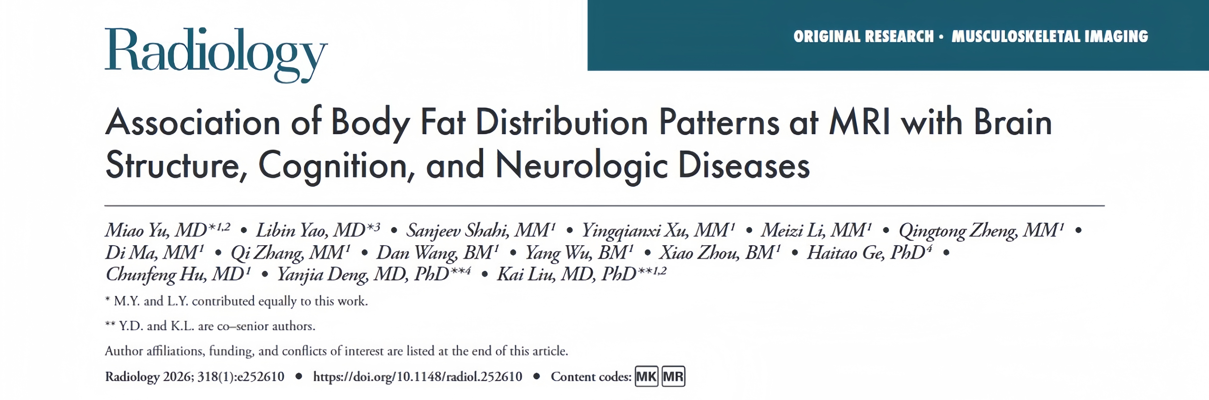 该成果于2026年1月27日正式发表于放射、核医学和医学成像领域排名第一期刊《Radiology》(影响因子15.2,中科院一区Top),首次以独立产权在该杂志发表原创研究,标志着附院在该领域的探索已达国际先进水平,也是上述科室助力高水平研究型医院建设取得的里程碑式新突破。