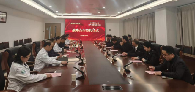 4月10日下午,我校资产经营有限公司与徐州市中医院战略合作签约仪式在徐州市中医院新院区举行。校党委常委、副校长刘慎军,徐州市卫生健康委党委书记、主任黄广振,徐州市中医院党委书记范从海、副院长季培琛,学校资产经营有限公司直属党支部书记丛宁、总经理轩萱,学校相关职能部门及院系领导出席。仪式由徐州市中医院副院长梁田主持。
