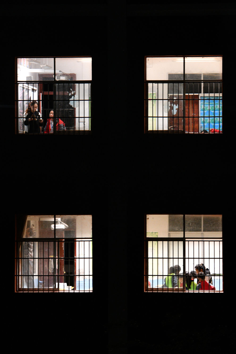 4月24日,徐州医科大学的研究生支教团在贵州省黄平县上塘镇中心小学辅导学生晚自习。