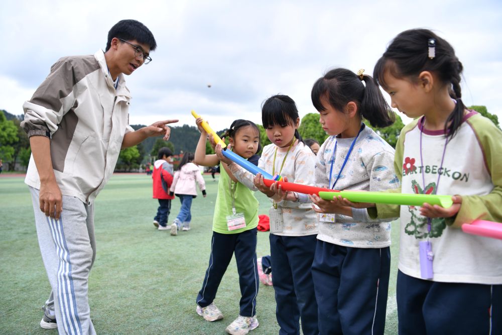 谷雨时节,在绿树环绕的贵州省黔东南苗族侗族自治州黄平县上塘镇中心小学操场上,学生们围着三名年轻的支教老师,一起跳绳、打篮球……这是学生们每天最期待的事情之一。
