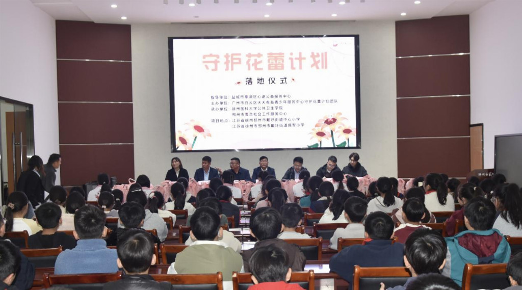 每一位女童都是含苞待放的花蕾,需要用真诚的守护浇灌,才能绽放出绚烂的生命之花。近日,一场以“五心浇灌五色花,守护花蕾绽芳华”为主题的“守护花蕾计划”落地活动,在邳州市戴圩街道中心小学温情启幕。本次活动由盐城市亭湖区心途公益服务中心指导实施,广州市白云区天天有益青少年服务中心守护花蕾计划团队、徐州医科大学公共卫生学院、邳州市壹合社会工作服务中心联合主办,项目在江苏省徐州市邳州市戴圩街道中心小学、拥军小学落地。各方以公益初心、专业匠心、协作同心、关怀暖心、守护决心,浇灌出希望蓝、专业紫、团结橙、温情粉、勇气红五色花,为女童筑牢安全屏障。