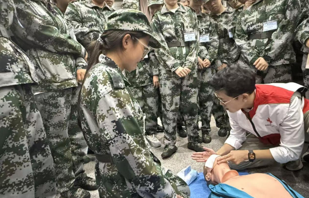 本次培训采用“线上+线下”结合的方式进行,更加适配新生学习时间。线上重视理论学习,组织全体新生完成红十字会“救在身边˙应急救护服务平台”注册报名和救护视频课程学习,通过理论考核并获取“在线学习证明”。线下注重知识补充和实操技能掌握,红十字会师资和第二临床医学院急救与救援医学系师生志愿者们从救护理论和实际操作方面,分班级为新生进行了系统培训。老师们结合真实急救案例,系统讲解了心肺复苏与自动体外除颤器(AED)、创伤包扎等急救技能的操作原理及技术要点。在实操训练环节,新生以连队为单位,分组进行模拟练习。志愿者“一对一”指导,逐步校正动作细节,帮助同学们熟练掌握心肺复苏、创伤包扎等关键步骤,确保培训专业性与实效性,助力学员顺利通过实操考核。