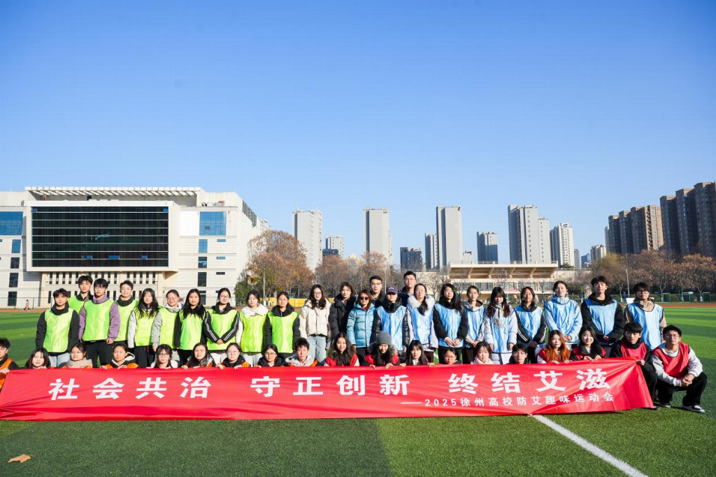为积极响应国家关于艾滋病防治工作的号召,提升高校学生群体的艾滋病认知水平和自我防护意识,12月15日,2025年徐州市高校防艾趣味运动会在徐州医科大学主校区田径场顺利举行。本次活动由徐州市疾病预防控制中心和徐州医科大学公共卫生学院联合举办,吸引了来自徐州医科大学、江苏师范大学、徐州工程学院、江苏师范大学科文学院、江苏建筑职业技术学院、江苏安全技术职业学院等六所高校的100余名师生参与,大家齐聚一堂,以运动助力健康,用行动传递防艾信念。