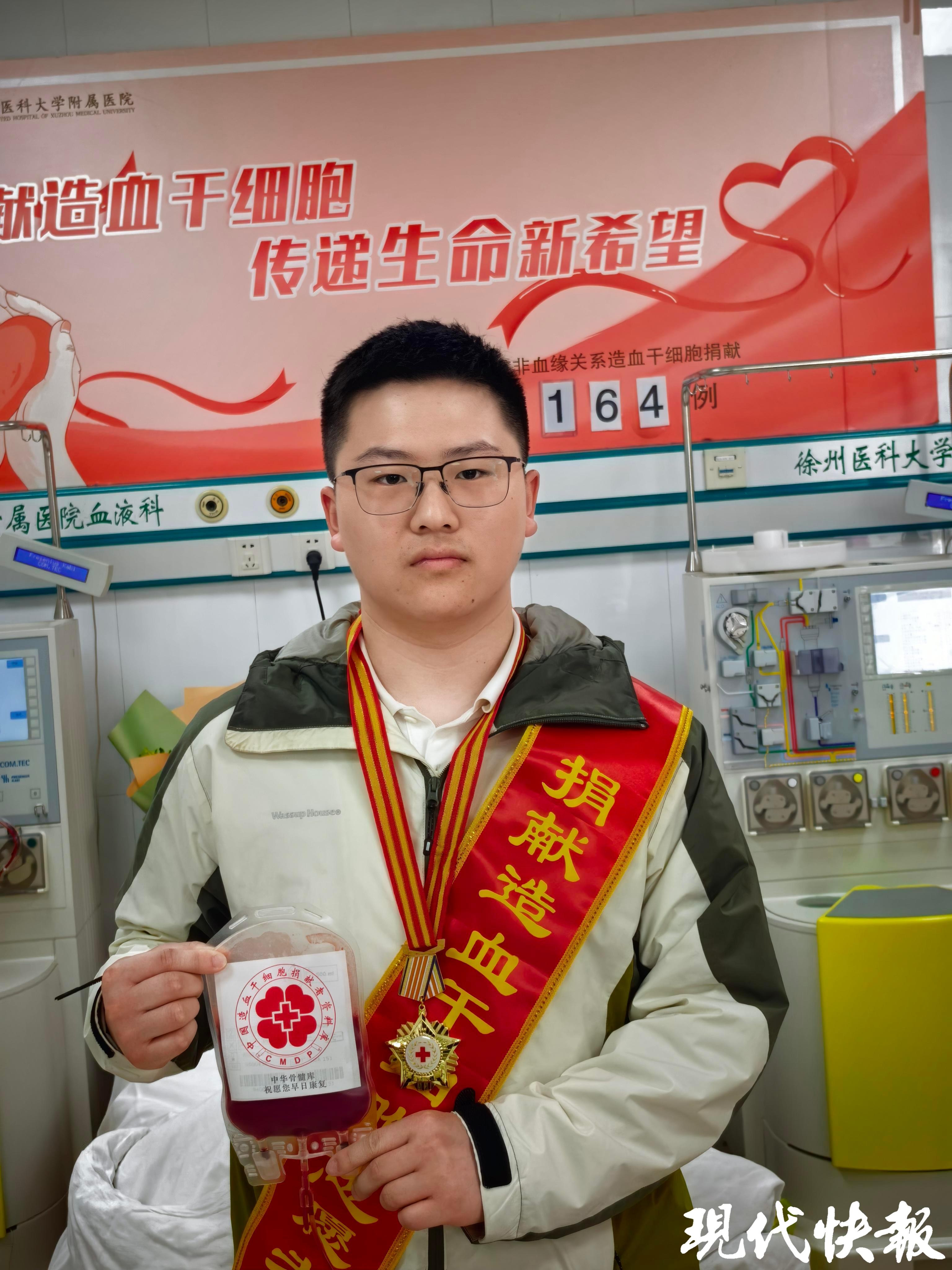 3月23日上午,在徐州医科大学附属医院,一场温暖而庄重的生命接力顺利完成。徐州医科大学外科学硕士研究生刘家正,成功完成造血干细胞捐献,将这份珍贵的“生命种子”送往远方。3月24日正是他25岁生日,他以一场义无反顾的奉献,为自己的青春留下了最特别、最值得铭记的纪念。
