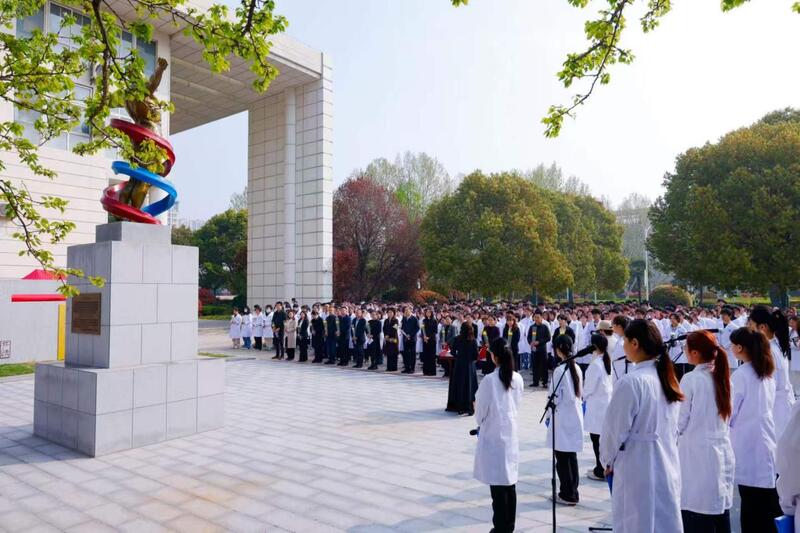 清明寄哀思,大爱永留传。4月1日上午,徐州医科大学在大体老师纪念园庄重举行“以生命对话生命,用微光映照大爱”清明缅怀大体老师暨解剖课开课仪式。师生与遗体捐献者家属以最虔诚的心意缅怀“无言良师”,在感恩与敬畏中开启一堂震撼心灵的医学思政大课。