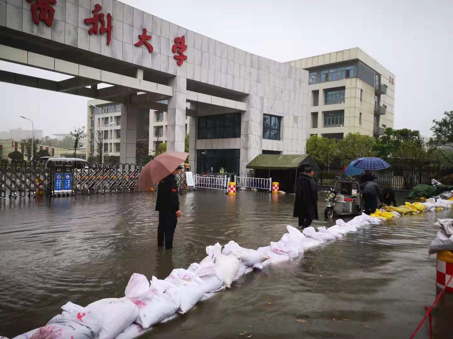 近日,受连降暴雨影响,主校区东大门区域因地势低洼,排水受阻,造成校园内积水。后勤管理处牢记初心使命,自觉践行“我为师生办实事”,积极采取应对措施,全力做好校园防汛保障工作。