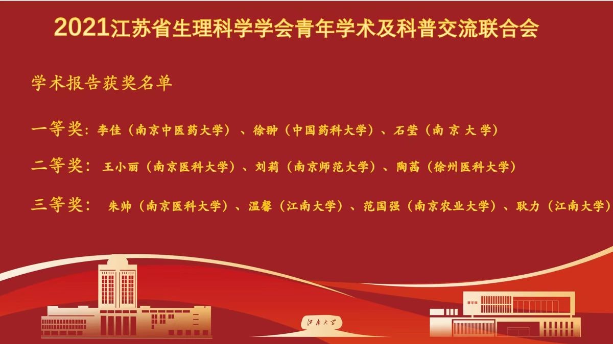 12月11日,江苏省生理科学学会青年学术及科普交流联合会召开线上会议,多所院校的生理学及相关学科的师生参加了此次会议。大会选邀了8所院校的10位青年学者做了精彩的科研汇报。