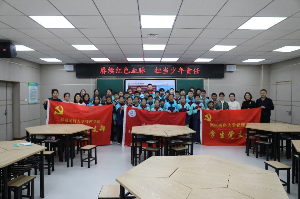 秋光正好,薪火相传。10月13日,一场跨越学段的思想对话在云苑路小学六年级(8)班的教室里温暖上演。徐州医科大学管理学院教工第一党支部与学生党支部的师生们走进校园,与小学生共同开展“赓续红色血脉,担当少年责任”主题思政课,以双向互动的方式完成了一次深刻的精神传承。