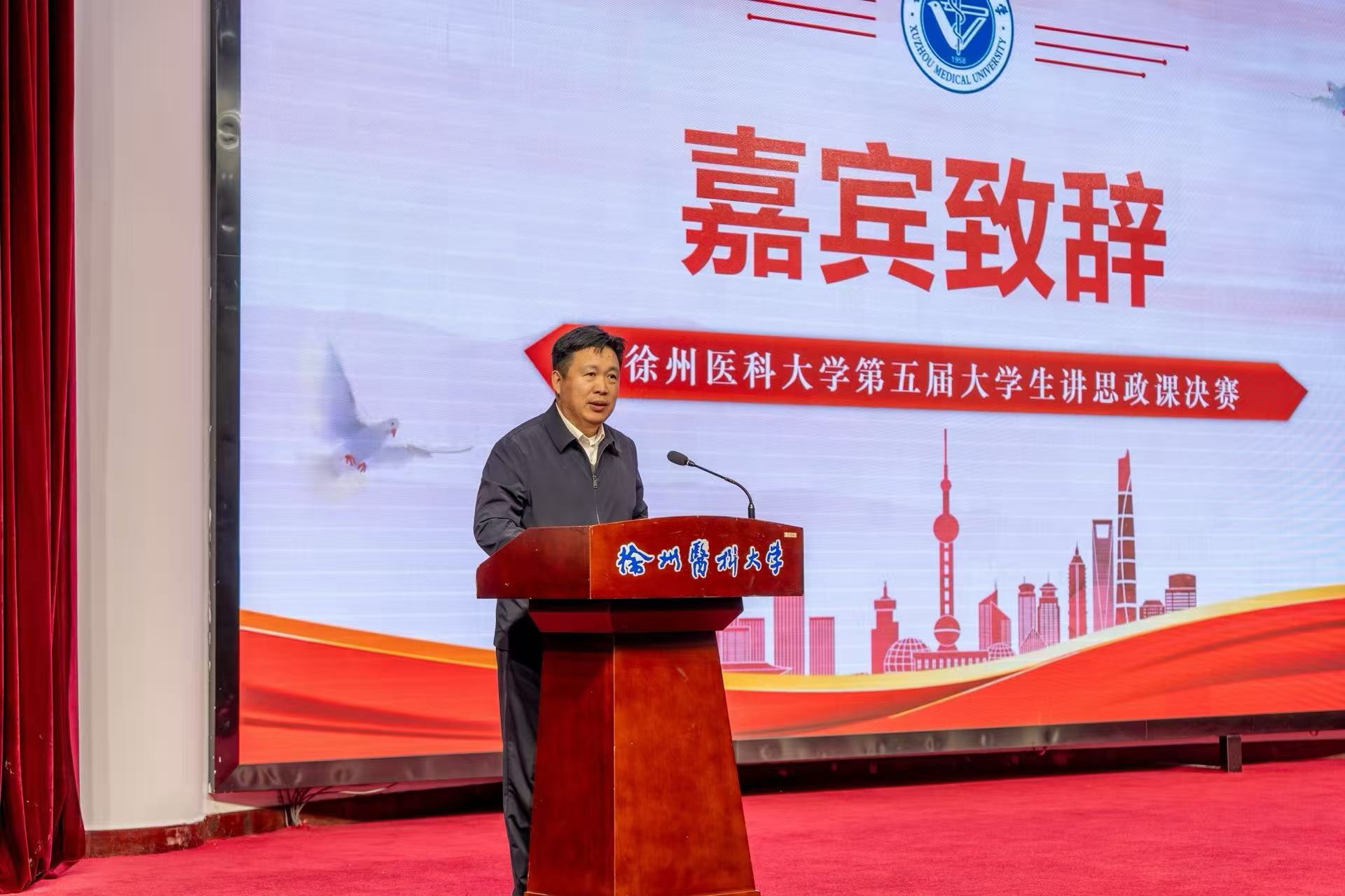 校党委副书记、副校长徐海波在开幕致辞中强调,“青年强,则国家强”,习近平总书记关于思政课建设的重要论述为青年学子指明了奋斗方向。他指出,本次活动是徐医学子展示风采、研习党的创新理论、交流互鉴的重要平台。学校始终聚焦思政课教学改革,“在马言马 铸魂育人”系列活动以“学生主讲、师生共鸣”模式打破传统灌输壁垒,让思政教育更具温度与活力,希望同学们通过活动深悟习近平新时代中国特色社会主义思想精髓,争做民族复兴的奋斗者。