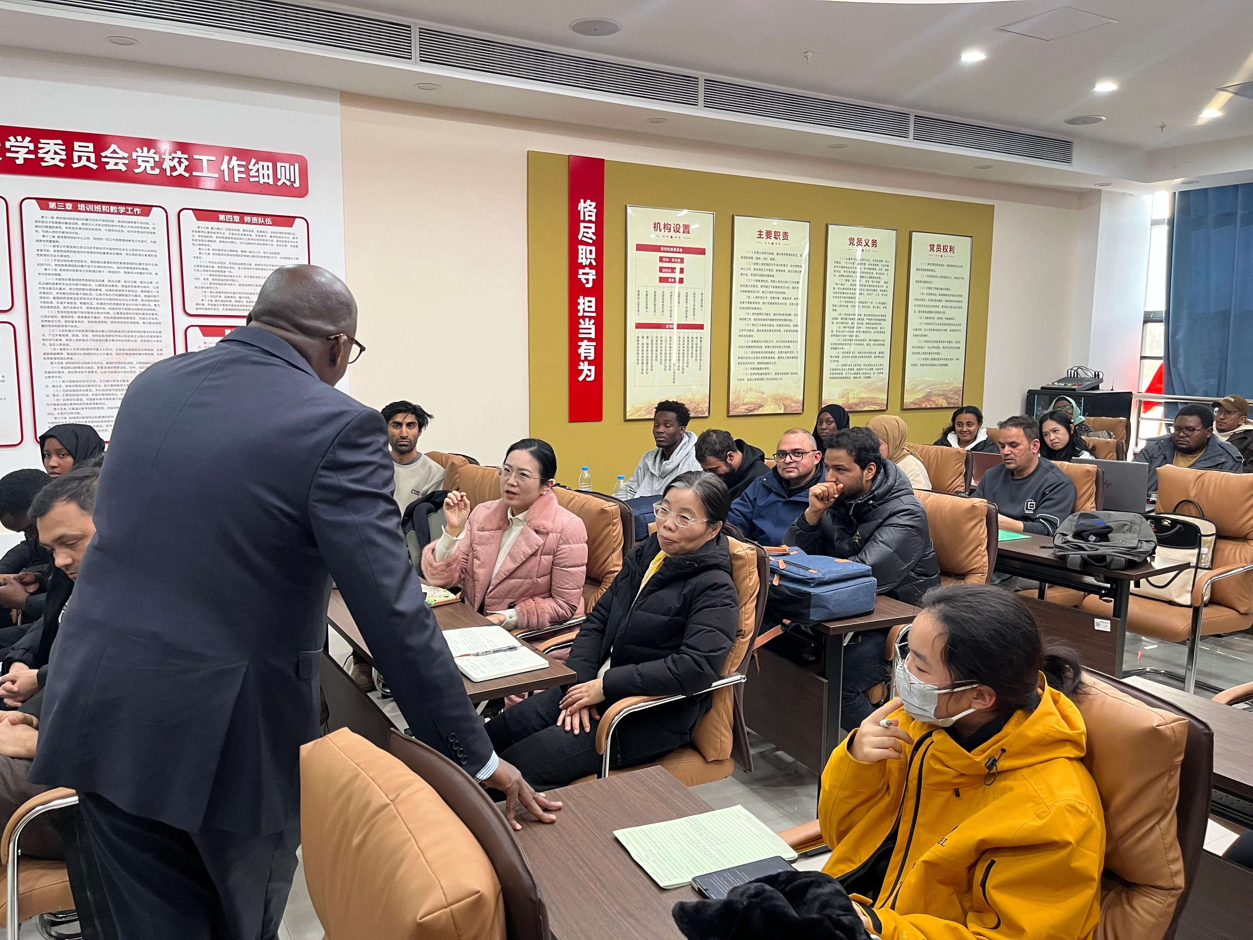 签约仪式前,穆萨教授以“2型糖尿病及其管理”为题,在新图书馆B104上了一堂生动的PBL教学示范课,现场师生互动积极。课上,公共卫生学院李静老师结合个人教学实践,就人工智能在PBL教学中的应用与穆萨教授进行了专业对话。
