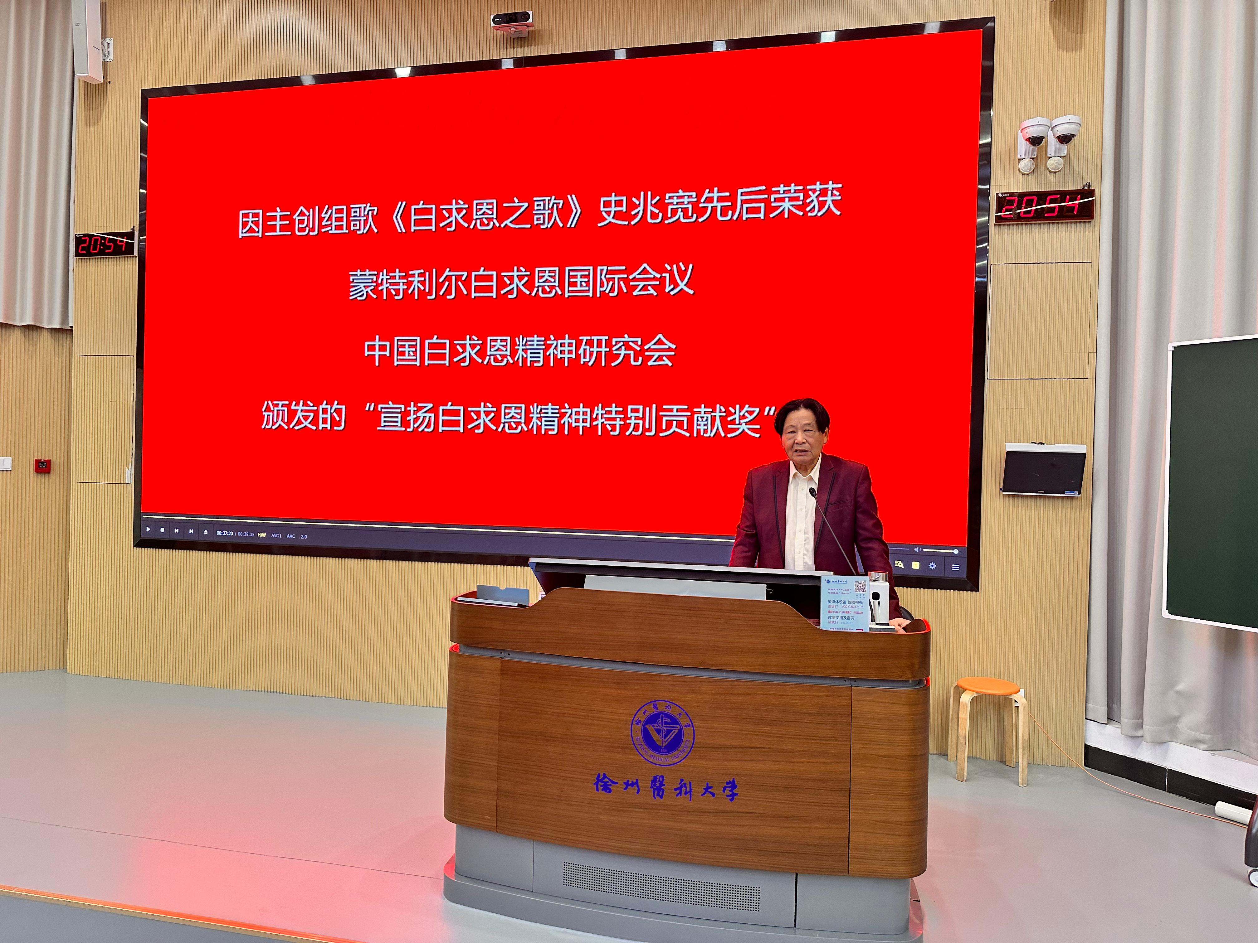 史兆宽先生分享了他创作白求恩组歌的历程与心路。他在白求恩诞辰75周年之际,开始以音乐讲述英雄故事。他讲述了创作过程中如何反复打磨歌词、融入白求恩作为医生、发明家、诗人等多重身份的细节,并分享了在海外举办纪念音乐会、推动中华文化与白求恩精神在海内外传播的实践。他用音符铭记英雄、以旋律传承信仰,让师生在艺术熏陶中感受白求恩精神的温度,体会医学与人文、信仰与艺术的深刻共鸣。