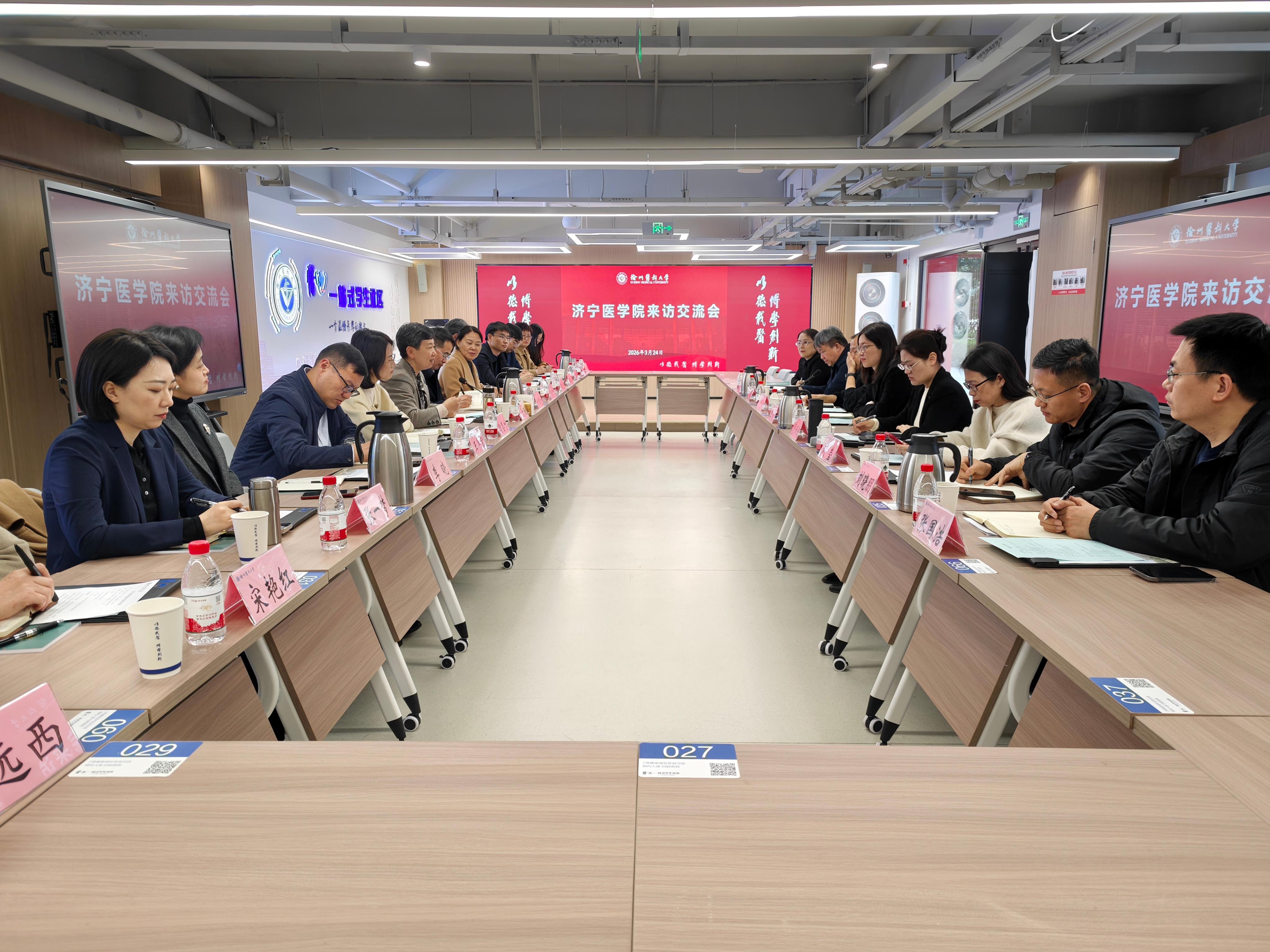 3月24日下午,济宁医学院党委委员、副院长王文姮一行来我校调研交流。我校党委常委、副校长王媛出席并主持交流会。学工部、团委、保卫处、信息化处、生命科学学院、继续教育学院等单位负责人参会。