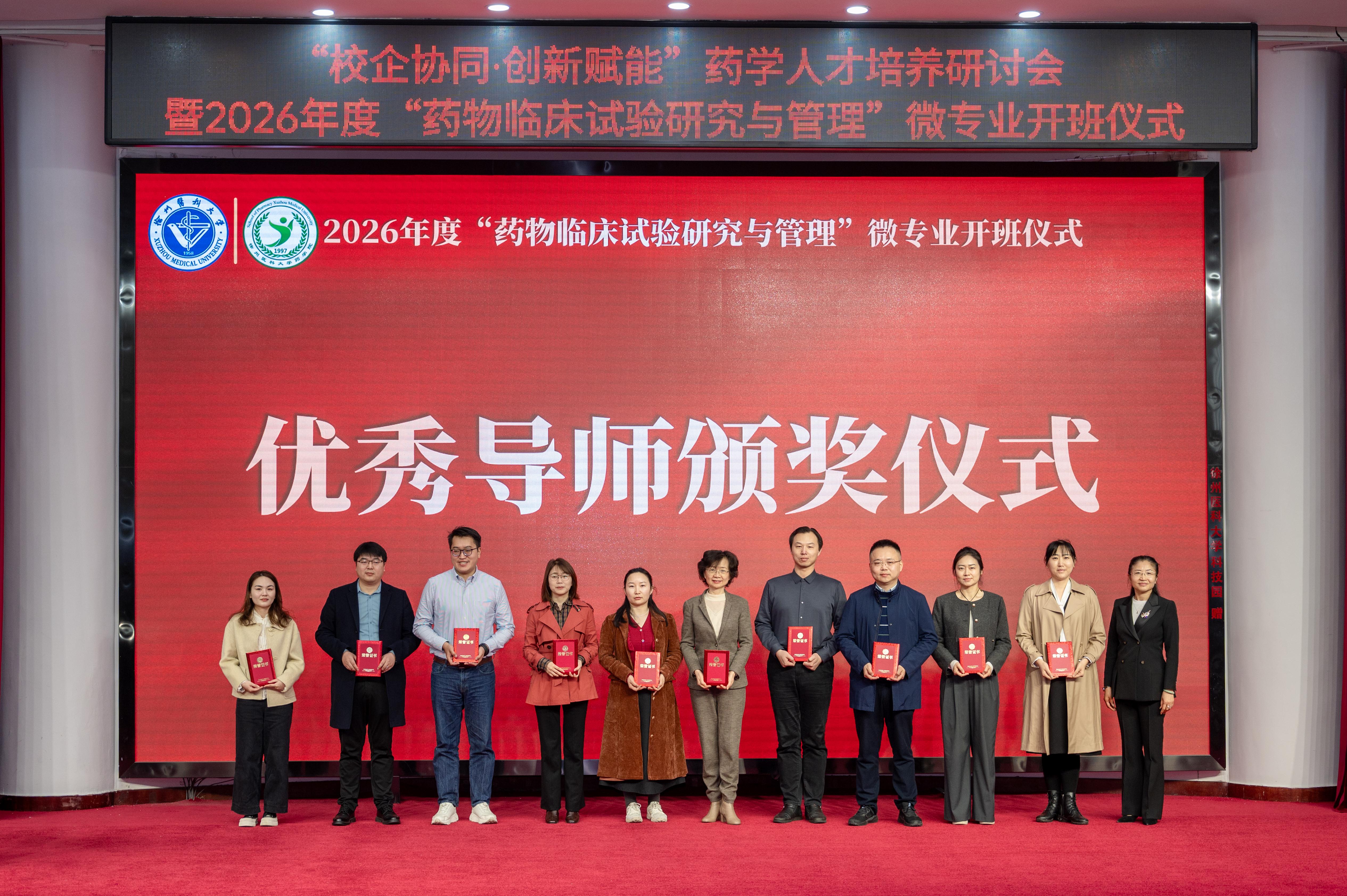 微专业开班仪式上,药学院副院长杨冬芝以“药学创新人才培养模式的徐医实践”为题作专题报告。药学院党委书记韩爱侠宣读优秀导师表彰名单并颁发证书。江苏先声药业临床药理总监张荣作为教师代表发言。他表示,将精心备课、倾囊相授,勉励同学们珍惜学习机会,通过微专业课程深入了解产业实际,在未来的就业竞争中更具优势。学员代表、药学院学生会主席团成员徐馨茜表态,将系统学习核心课程、钻研前沿研究方法,以饱满热情投身专业学习,为健康中国建设贡献青春力量。教务处副处长赵子明为微专业新一届班级授班旗,全体学员齐呼“学践临研,不负韶华”,将现场气氛推向高潮。