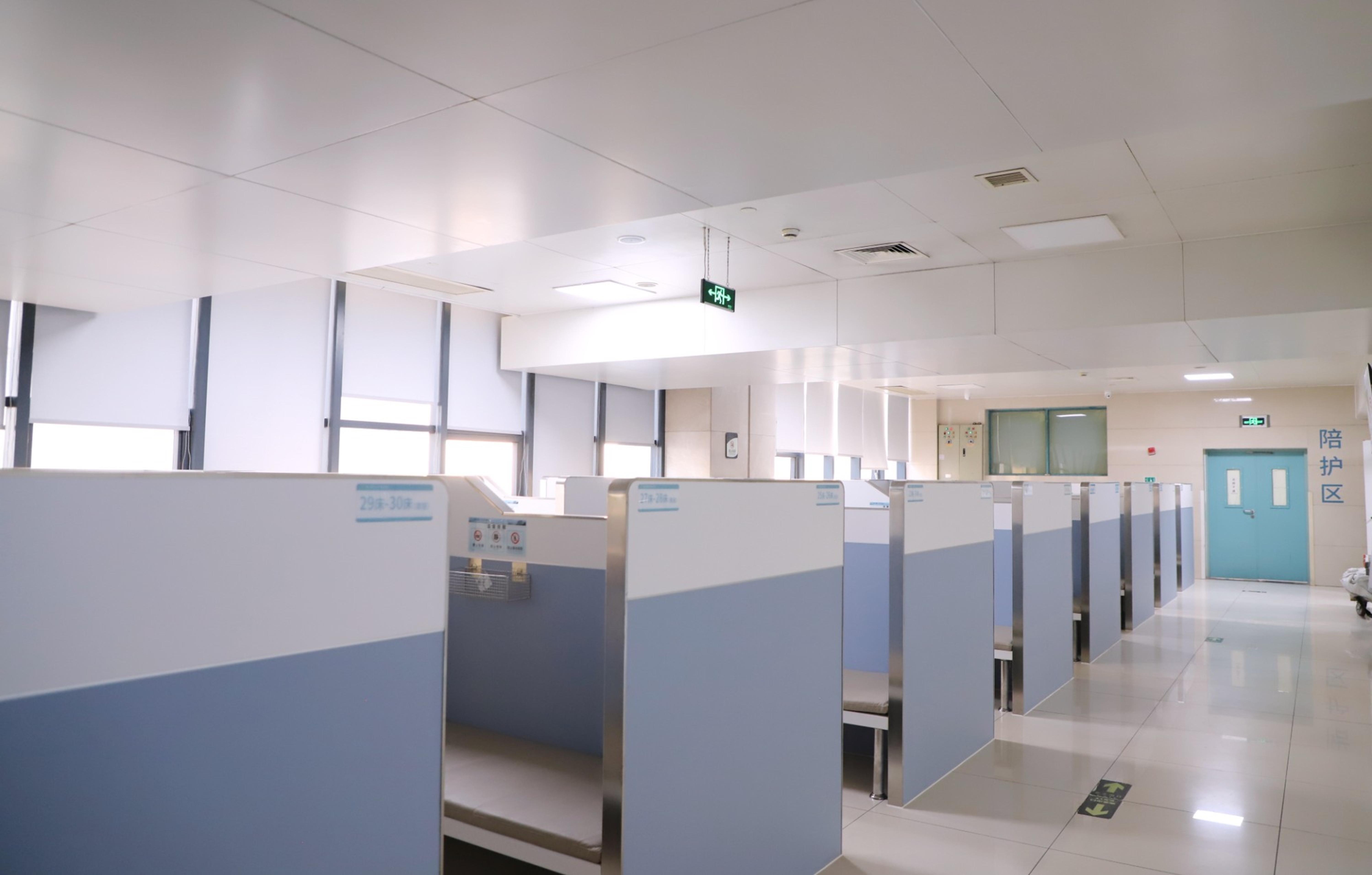 针对12号楼3层ICU陪人区开放式空间存在的休息条件差、隐私性不足、物品存放不便、人员聚集易增加院感风险等问题,院党委高度重视,全面改造升级重症ICU陪护区,2026年1月9日正式启用。此次改造创新参照动车卧铺设计理念,将原有单人木板床升级为配备易擦洗皮质床垫的单人床铺,共规划建成32个隔断式床位,实行“一名患者一张陪人床位”的管理模式,实现合理配置和有序管理。改造后的陪人区功能配套齐全,每个床铺均设置充电口、置物网兜、挂钩等便民设施,能够为病患家属提供休息、充电、置物等“一站式” 服务,在显著提升私密性与舒适性的同时,有效解决了家属休息难的问题。