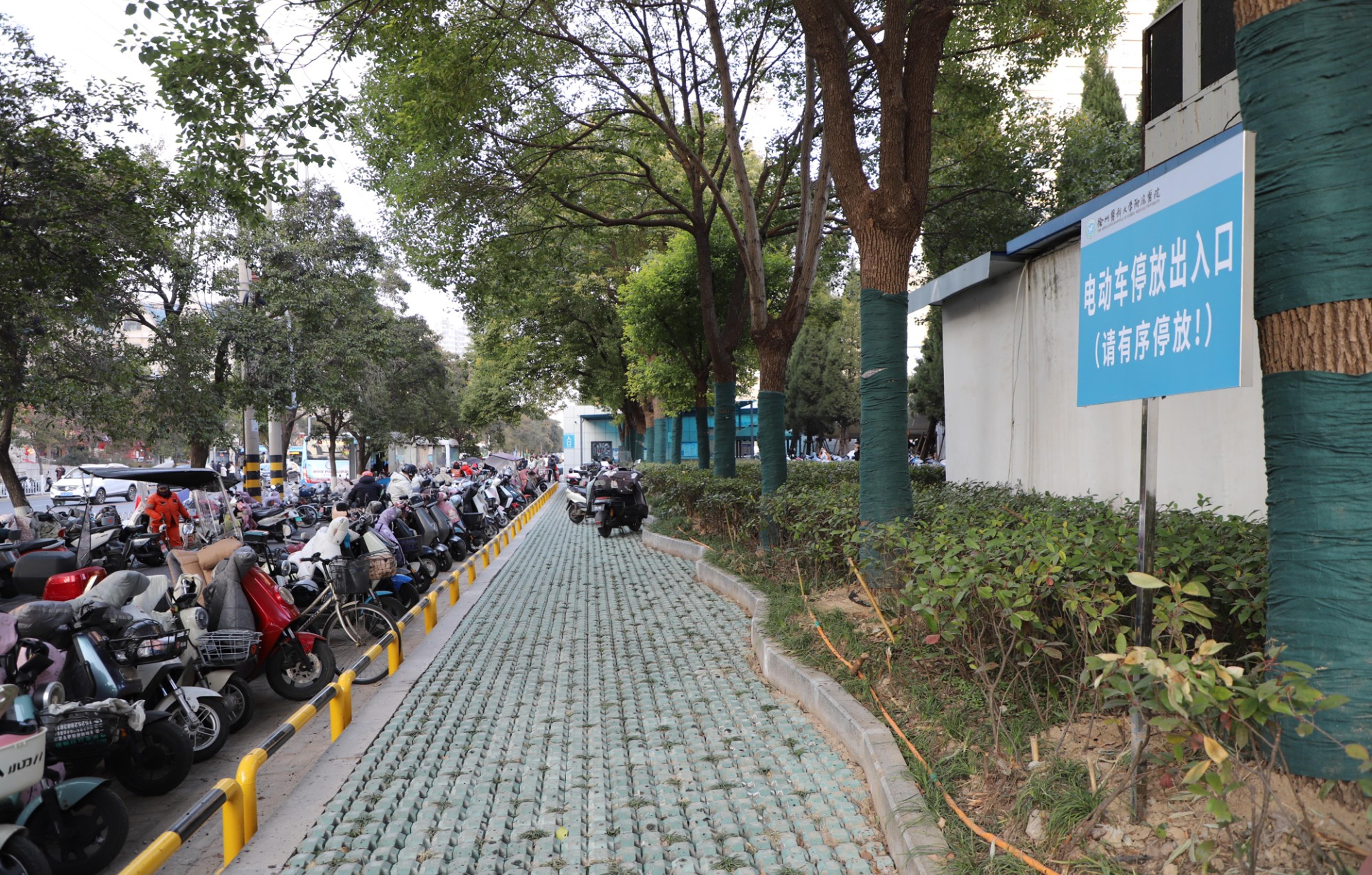 此外,针对西安南路东侧非机动车道两侧电动车车位紧张、停车困难的就医堵点,医院秉持利民惠民原则,主动与王陵办事处沟通协调,在兼顾城市绿化与停车便利的双重需求下,医院对该区域采用植草砖进行硬化处理,既有效增大了停车面积,又保留了绿化空间,切实缓解了病患及职工的停车难题。